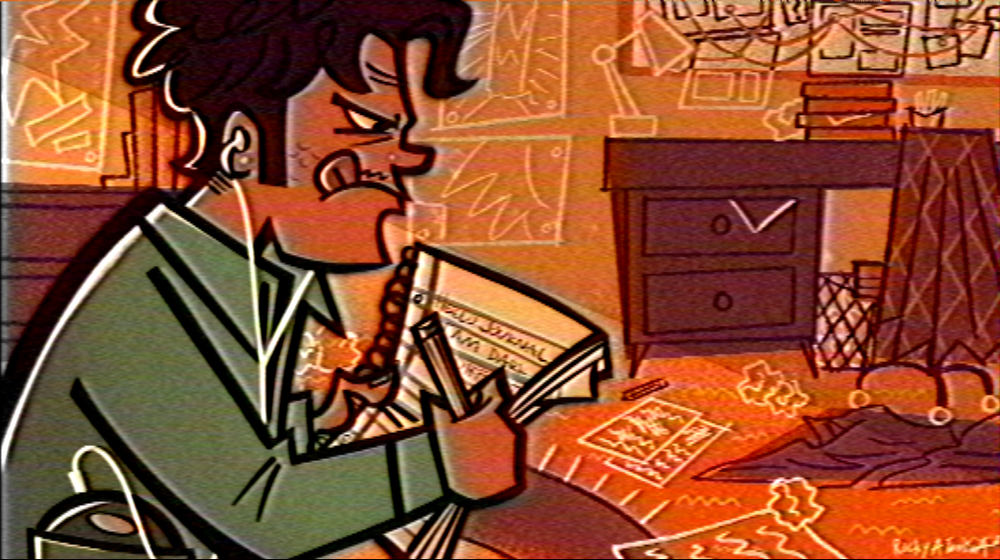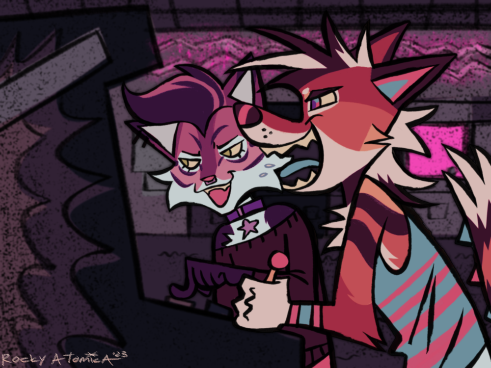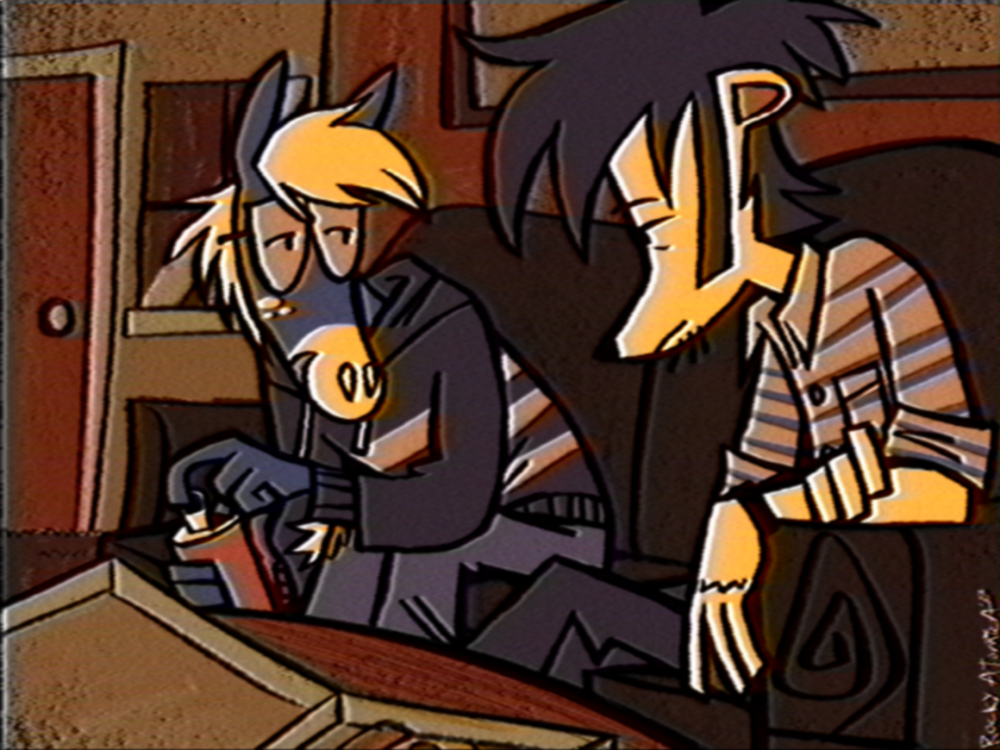 frames the character similar to if it were an actual screenshot from a cartoon. Scenery may be fictional or a